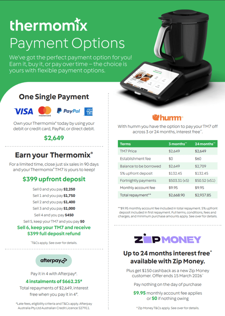 Buy a TM7 and you can add the TM7 Shopper Bag (perfect for travelling safely with your Thermomix®) for just $25. Ends 31 March